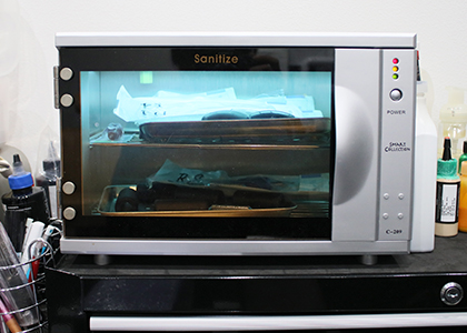 当店では医療機関同等レベルの衛生管理に努めています。使用後の針・インク・グローブ・保護バック等、なるべく使い捨てのものを使用しています。また、再利用の器具に関しましては、薬品・超音波洗浄機による洗浄、高温高圧滅菌器(オートクレーブ)・紫外線殺菌器(ステリライザー)による滅菌・殺菌処理を施した後の使用となります。血液等の付着を避けるため、施術台・使用器具は全て保護フィルムにて養生の上、施術しております。